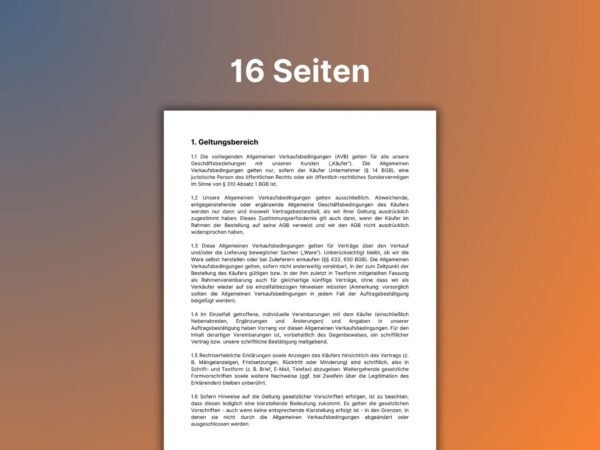 Muster AGB Verkaufsbedingungen im B2B Bereich – Allgemeine Verkaufsbedingungen mit 16 Seiten