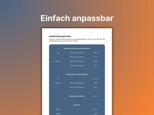 Anhang 1 Anmerkungen, Transparenzgebot, Gewährleistungsfristen, uvm.!