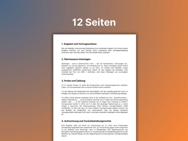 Muster AGB Verkaufsbedingungen im B2B Bereich – Allgemeine Verkaufsbedingungen mit 12 Seiten